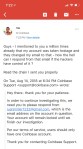 “I tried to work with coinbase hotline who is supposed to help with this but they were clueless even after I told them that the hackerchanged email address on my original account and then created a new account with my email address. Since then I’ve been waiting for a ‘specialist’ to email me (was supposed to be 4 business days it’s been 8 days) and I’m still locked out of my account because Coinbase support can’t verify me,” he said.
