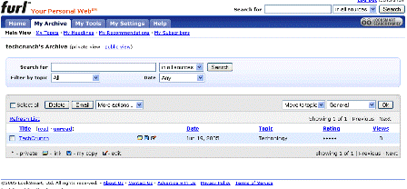 Replace “techcrunch” with any other user name in the link above, and you can see their bookmarks, too. Furl also has a private option, however, and those links will not be viewable to anyone except you.