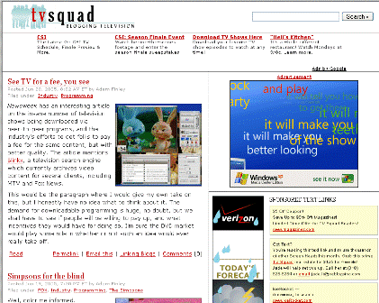 The Weblogs, Inc. network of weblogs (WIN) is a blog network – literally an affiliation of weblogs that are each focused on a particular industry or topic. For instance, my favorite weblogs, inc. blogs are The Web 2.0 Weblog, engadget, tvsquad, therssweblog and cinematical. There is a list to all weblogs, inc. blogs at the home page.