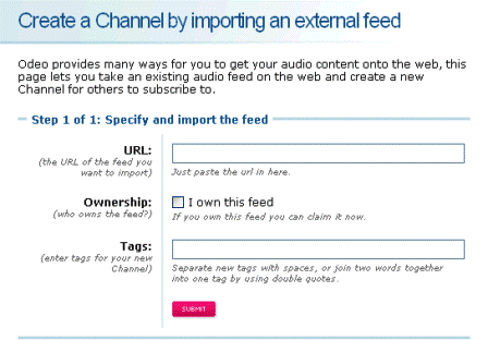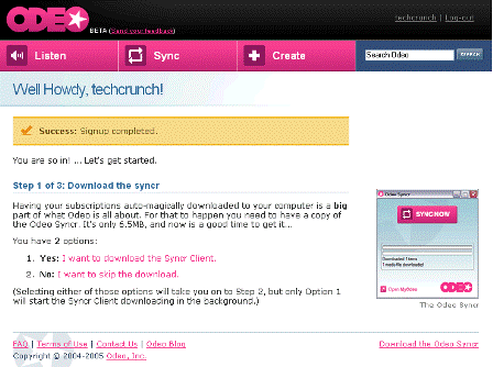 Lots of Odeo beta invites went out today, and TechCrunch received one. We signed up. We did things. Everything worked, except the “create podcast”, which they told us up front wouldn’t work.