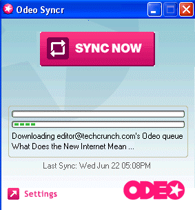 In their own words, “Odeo consists of three major parts: A catalog of audio content, of all types, which is constantly being added to. The Odeo Syncr, which let’s you download anything in the catalog (and, optionally, put it on your MP3 player). And creation tools, including the Odeo Studio, which let you publish your own audio content, which will then show up in the catalog. (The creation tools aren’t already for public use yet, though.)”
