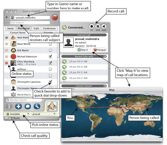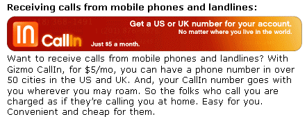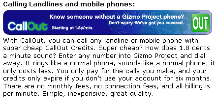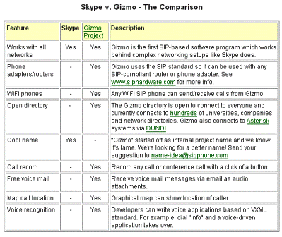 A problem with Skype is that it is a closed silo – it will not interconnect with other VOIP systems. Gizmo, however, is built on the open source, standards-based net calling program built by SIPphone. According to Gizmo, there are over 100 applications peering with SIPphone technology (link).