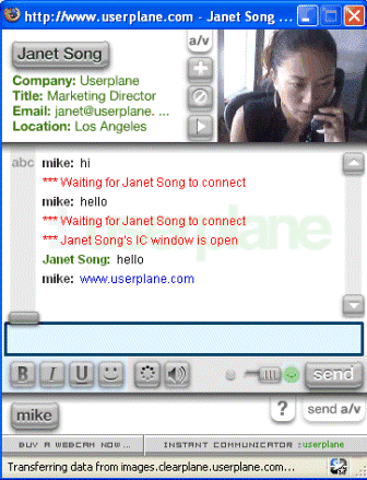 This was the first product launched by Userplane. The Webmessenger product is a one-to-one instant messaging client that includes text, audio and video features. Janet Song, Userplane’s Marketing Director, gave us a demo of the product: