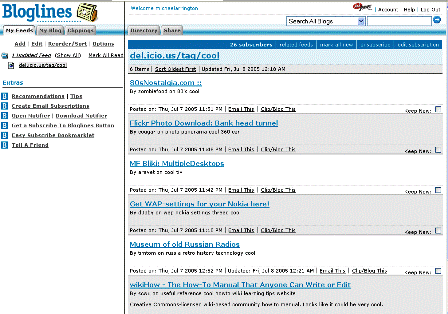 7. Bloglines has a useful but little known about email feature – you can create an email address and all emails to that address show up as a feed in bloglines. It’s very useful for subscribing to newsletter type emails that you’d rather have in your RSS reader than your email inbox.
