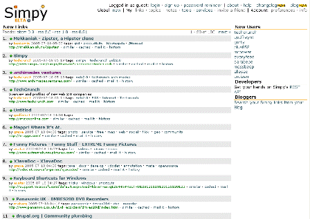 In their own words, “Simpy is a social bookmarking service. With Simpy, you can save, tag and search your own bookmarks and notes or browse and search other users’ links and tags. You can be open and share your links with others, or keep them private. Simpy also helps you find like-minded people, discover new and interesting sites, publish your bookmarks, detect and eliminate link-rot, etc.”