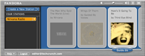 Tom sent me an email explaining what it does: “Pandora is a “music discovery service” designed to help you find and enjoy music that you’ll love. It works like this: you give us the name of an artist or song and we instantly create a “station” that plays songs that share musical characteristics with the artist/song you entered. From there you can fine-tune the station to your tastes by giving us feedback on the individual tracks we play. You can make up to 100 unique stations that play all kinds of music – Pop, Rock, Jazz, Electronica, Hip Hop, old, new, big names, and small acts — over 300,000 songs from more than 10,000 artists. Pandora is entirely web-based; you won’t need to install any software to start listening.”