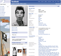 I emailed FaceBook over the weekend and requested an interview. Chris Hughes wrote back and said he’d be delighted. We spoke today. And Chris, great guy that he is, gave me access to the site via a demo account. I was finally able to see what FaceBook was all about. By the way, the screen shot above is the demo account profile. The Kramer picture is a nice touch, I think.