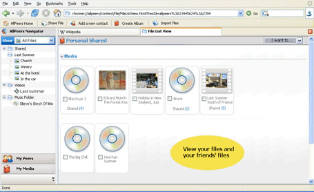 With AllPeers, I can share photos and home movies with my parents, songs (and anything else) with friends, and also access the files that they choose to share.