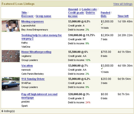 Like London-based (and Benchmark funded) Zopa, Prosper is a marketplace for borrowers and lenders.