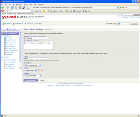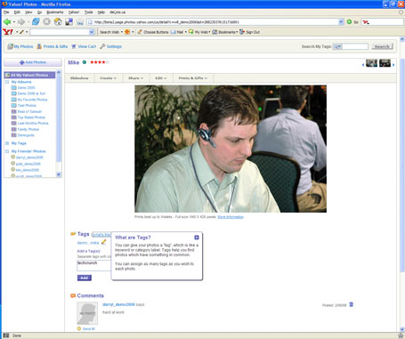 Yahoo Photos will integrate popular Flickr features, like tagging and sets, as well as popular printing options mentioned above. The screen shots below show some of these features.