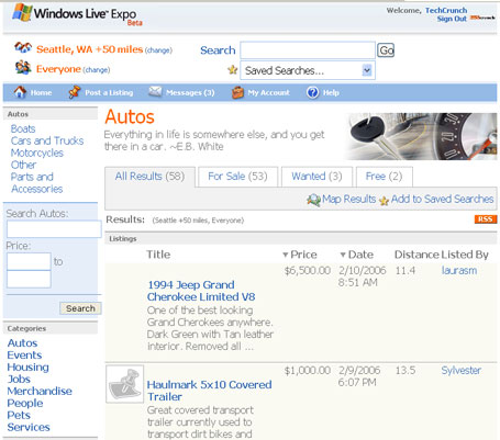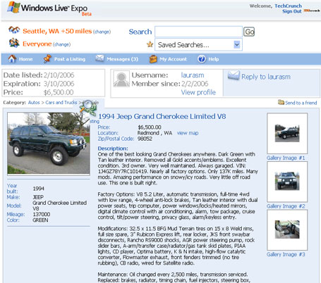 Microsoft’s new classified product, Live.com Expo, has started to roll out additional beta testers.