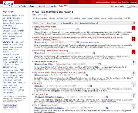 Rojo is ahead of the pack again in terms of features, and relevance is a hot topic right now. The question is whether this is going to be enough to drive user adoption in the extremely crowded feed reader space. Richard asks a different question: “I wonder if this will wake Bloglines out of their slumber?”