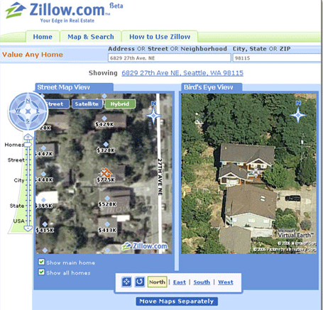 A little competition is good – just two weeks after Zillow saw Real Estate ABC and Google Real Estate move into its territory, they launch a new 3D viewing application based on Microsoft Live’s “bird’s eye view” feature. This is a perfect use for Live.com Local, allowing potential buyers to get a better view of the homes they are considering purchasing.