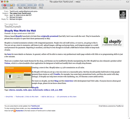 ReadWriteWeb and I have been quietly testing a superb new FeedBurner blog-to-email product that addresses every feature I requested on No. 2 of this list. This new (free) Email Subscriptions product launches officially this morning and can be found under the “publicize” link at Feedburner.