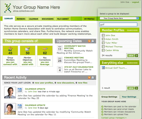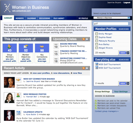 The focus of CollectiveX is on the group, not the individual. Members of the group can interact via file sharing, messaging, calendaring and exchange of leads/contacts. It frankly answers to question that many social networks pose: Ok, we’re here, now what do we do? With CollectiveX, the entire point is to facilitate interactions among existing groups. As a member, you can be a part of as many groups as you like: boards, company teams, charities, whatever. For additional information, see my last post on CollectiveX, when it was just entering private beta. As I said before, CollectiveX is what LinkedIn should have been.