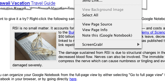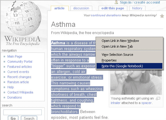As I mentioned in my previous post, Google Notebook is a direct Del.icio.us competitor. You can bookmark content (a web page or a piece of content on a web page) either via normal Google search (click on the “note this” link at the bottom of a search result), or on the open web with an IE or Firefox extension (highlight text, right click).