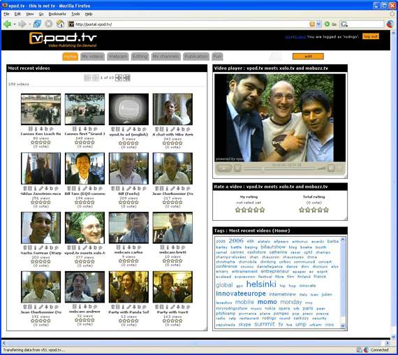 I mentioned vpod.tv, a startup headquartered in Paris and Madrid, in my Innovate 2006 roundup. Today they are announcing a $5.1 million Series A round, led by Frédéric Humbert of Innovacom.