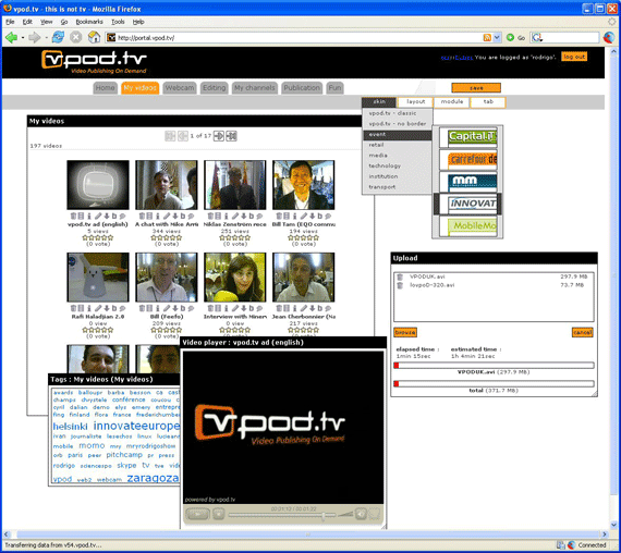 And finally, the tools for creating your own “channel” on vPod are stunning. The only Flash is around the player. Everything else is javascript and dhtml. They allow, for example, resizing of boxes by dragging the mouse, something I’ve only seen in Flash previously.