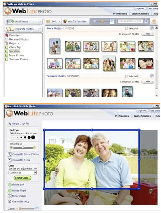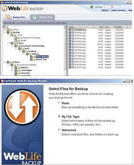 WebLife is a combination of two services: photo management and sharing, and online storage/backup. The basic service allows 1 GB of storge and is free to Earthlink ISP customers. Others can access it for $3/month. Additional storage is available for $1 per month per GB.