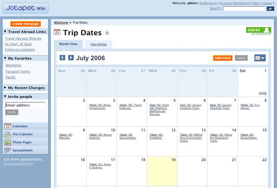 Jotspot 2.0 takes the existing, mostly unstructured Jotspot wiki application and adds Office like functionality. The result is a wiki that allows users to add structured pages like calendars, spreadsheets, file repositories, documents, and photo galleries. Pricing for the service remains unchanged, with a free version and premium options ranging up to $200/month based on users, pages and storage.