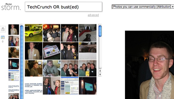 Thus to respect the spirit of CC Commercial Attribution license, the photos used in the following screen cap came from users flickrelmo, fimoculous, David Sifry, TechCruncher Nik Cubrilovic, Sifry again, hyku, Sifry, Cubrilovic (X2), ifindkarma , two more Sifry, the charming Irina Slutsky(2), Mark Birbeck and BlueAce. Thanks for using CC Commercial Attribution – and the tag TechCrunch!