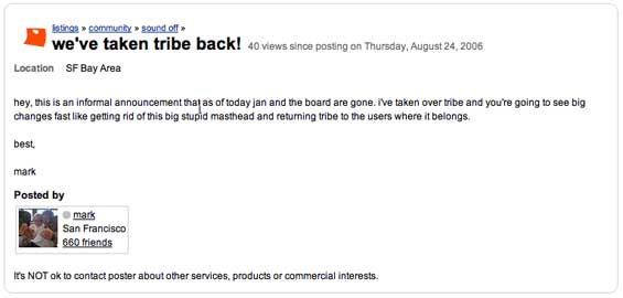 The language and method of communicating this message is odd to say the least. But this is definitely Mark’s Tribe page. I emailed Mark the link and asked him if he has a comment. He replied “Yes in an hour” but I haven’t heard back from him after two hours and a couple of additional emails from me.