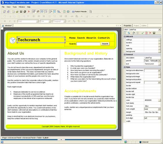Synthasite is going to be very popular. Like Sitekreator it has a wide variety of templates to choose from, and the team has a few ideas on how to help site creators integrate with third party web services as well. It has significantly more functionality than Google Page Creator. However, the beta product is only working currently in Internet Explorer (Firefox will be released soon), and we had a lot of trouble with the site repeatedly crashing and closing down. When we persisted, the results were good, though, and we assume that there will be no public launch before the the site is completely, or at least mostly, stable.