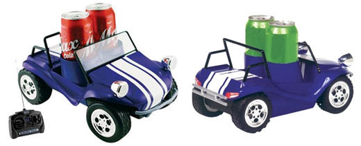 Nothing too fancy here, just a radio-controlled car that looks like a dune buggy — wait — what’s that I see? Two frosty beverages being driven to me? Now that looks like it might be worth buying.