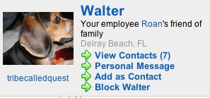 A related section that displays a user’s friends uses the same algorithm to determine closeness and lets you hover over anyone’s image to see their relationship, send them a message or block them. (Example on the left.)