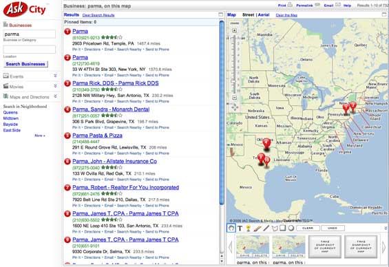 The reason that AskCity has such good content is that they’ve taken it from CitySearch, another service owned by parent company IAC. CitySearch has ten years of local content, and that is now deeply integrated with Ask’s maps product.
