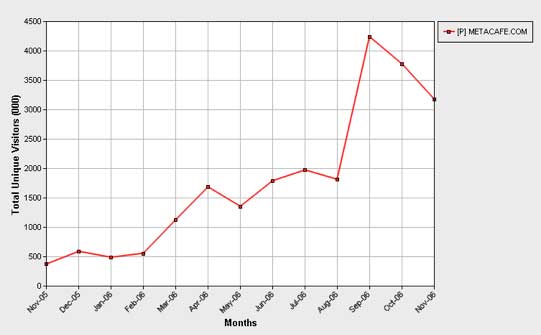But we are hearing that those discussions may have stalled due to the recent release of November Comscore traffic numbers. The number of monthly unique visitors to Metacafe continues to decline from a high of 4.2 million in September, to just 3.1 million in November, a drop of approximately 25%. Total page views are relatively flat over this period, going from 97 million in September to 101 million in November.