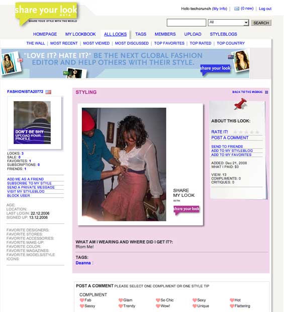 ShareYourLook is a more recent entrant. They’ve copied most of the interesting features of StyleDiary and have added more “web 2.0” features like photo ratings and bios. The result is a more user friendly site, although the image quality issue plagues them as well.