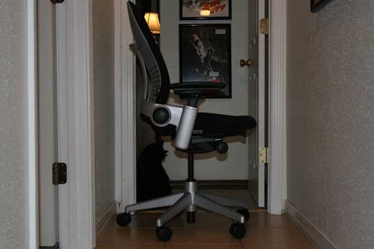 The only downside to the chair were the casters. If your office is like mine, there are cables and wires everywhere under your desk, from computers, gadgets, cellphones, video decks, you name it. My current office chair ($39 from Costco) negotiates these hazards like a Humvee in the field. The Liberty, however, got tangled and bogged down, forcing me to physically lift it several times to free it. While cleaning and organizing my office is an option, it’s not likely. Had the chair larger casters, I’d probably be able to scud over the plastic and metal jungle with ease.