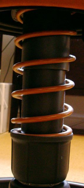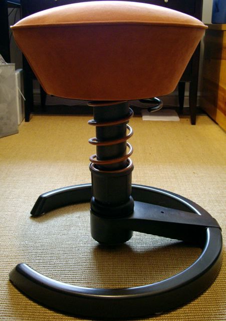 The build of the stool is pretty basic: a cushioned seat on a giant spring. You adjust the tension of the spring by twisting a collar on the stool’s post at the bottom of the coil. This dictates how much movement the chair will have. There’s another pneumatic height adjustment, but that’s it.