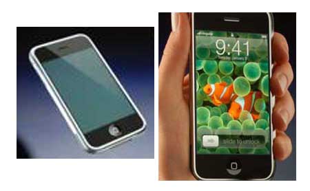 The big news…Apple is finally announcing the iPhone (images are actual device) after 2.5 years in development. Name is confirmed. The device has a large, wide touchscreen with a virtual keyboard and runs OSX. The device has a 3.5 inch touchscreen, 8 GB of storage, a 2 megapixel camera and one button. Also wifi enabled. Cingular is the carrier. This thing will run desktop style applications. Get Google maps via the browser. Check email like the desktop. There are two models. The 4 GB is $499. The 5 GB is $599. They won’t be available until June. Oh. Great.