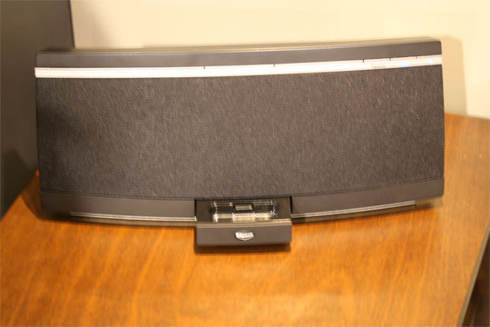 It is aesthetically parallel to the CS-700 and it has an attractive touch activated iPod dock that slides into the unit. And, of course, the dock can charge all iPod’s with 30-pin connectors.