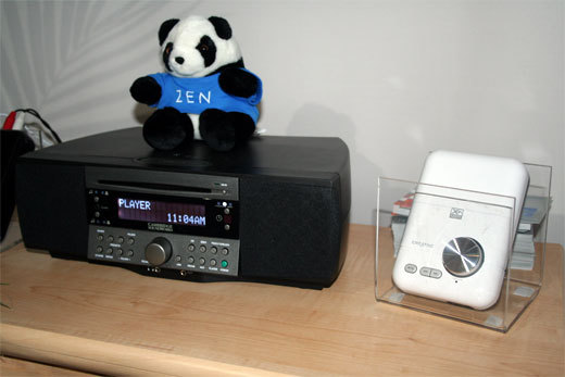 X-Fi is a technology for improving audio quality from standard sources including MP3 players and streaming sources. They’ve stuffed this technology into a set of wireless devices, the XDock Wireless dock and the X-Fi Wireless Receivers. You plug in an iPod into the XDock and can play music out to an optical or RCA-enabled receiver. Then, you can transmit the audio to a Wireless Receiver in another room. The receivers are $99 and the XDock is about $199 for the iPod. The package will cost about $300.