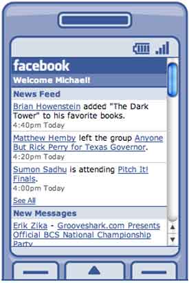 Facebook announced a bunch of mobile features today, although all of them have been around for some time. The only new feature is the Facebook mobile page which lists all of the mobile tools in one place. The tools include a mobile optimized website at m.facebook.com, an easy way to upload photos and notes to facebook via SMS and MMS messages, and a tool to receive new Facebook messages on your phone via SMS.