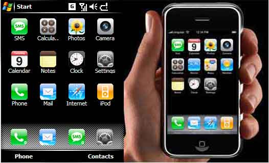 Looks like people are already attempting to imitate the iPhone. A Windows Mobile skin that resembles the iPhone’s interface has been released but quickly taken down thanks to Apple’s crack team of lawyers. There’s also a version for the Palm OS that’s still up, but you better grab it quickly before it gets pulled. You can score it here.