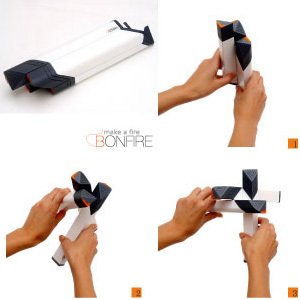 The tripod burner looks remarkably like a real bonfire with the logs crossed together like a teepee. A simple flick of the switch on one leg gets the burners goin and another switch adjusts the ‘flames’ intensity. When you’re done making s’mores and you’re ready to roll then just fold it up, throw it in a bag and you’re off.