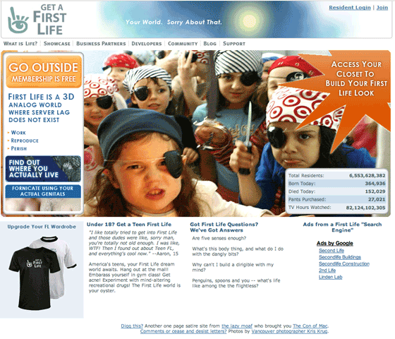 Darren Barefoot voices his dismay over all the Second Life hype by creating a very, very funny parody site called “Get a First Life.”