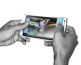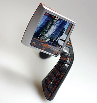 This thing reminds me of something from a bad sci-fi movie. Like something that should have been in Minority Report. The display and keypad twists to give users a different grasp on the device. Shrug.