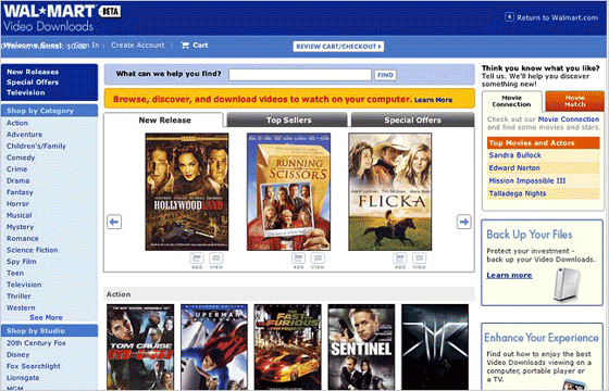 Walmart has had mixed results in their online initiatives. They’ve completely bailed out of the movie-rental-by-mail market when they couldn’t make headway against Netflix. In this case, however, there is no established player to try to kill. The movie download market is in its nascent stage and anyone can win.