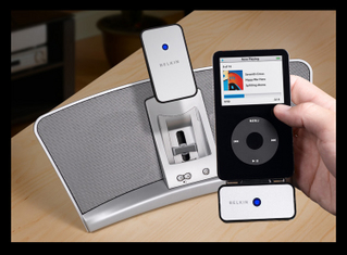 Speaking of wireless, Belkin’s Bluetooth iPod dock adapter[[http://www.belkin.com/pressroom/releases/uploads/01_08_07BlueToothDockAdapter.html]] Bluetooth-ifies any iPod speaker or dock. Plug the dongle into your iPod and sit the receiver in any iPod dock, and you can use your iPod as a remote. (Hopefully soon iPods will do this sans dongle.)