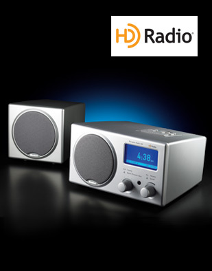 This tabletop unit from Boston Acoustics is pretty barren, but it’s stylish face might be enough to woo some buyers. The system features two speakers, one in the head-unit and one satellite. It is capable of receiving HD2 Multicast programming. And there is an input jack for an iPod or whatever.