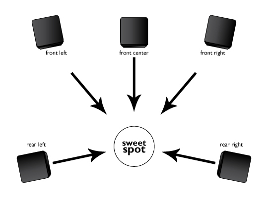 After figuring out what will work in your room, you need to think about placement. All listening rooms, whether it is the family room or a dedicated room you use just to chill out to music will have a so-called sweet spot. In simplest terms this is the place where music will sound its absolute best. For sending up speakers this is generally the mid point of the room. Generally the two front speakers should be equal distance apart from the center channel, and just about 12-feet apart from each other.