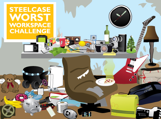 Anyway, quick update about The Steelcase Worst Workspace Challenge. We’ve had a lot of great entries so far and I expect they’ll keep coming—I’m sure we’ll get a flurry of them at the end of the week.