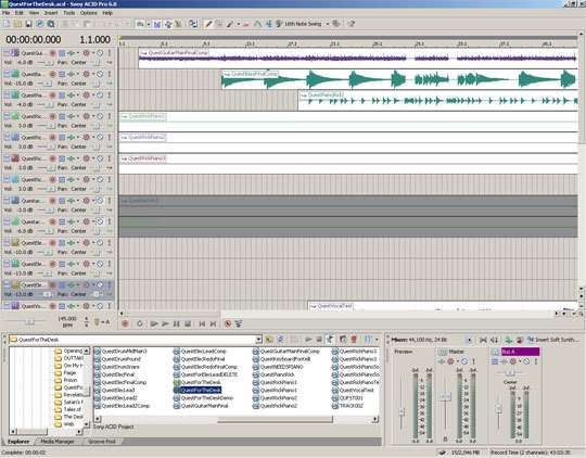 Acid Pro will allow you to render all your individual tracks into one WAV or MP3 file. If you have never done any of this before, take time to experiment with all the features. It can be overwhelming at first, but once you have recorded a few songs, you will continue to get better and be able to produce near professional-quality music.