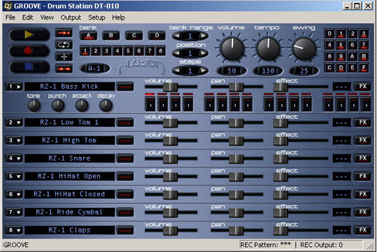 In addition, since I don’t have a drummer handy and don’t know how to play them myself, I use a drum program called DrumStation. It’s a very handy application that gives you eight tracks to create your beats. You can set your tempo and it comes with over a dozen different drum “kits.” You can even create your own custom kit and save it. When you have a beat you like, you can render it as a WAV file and easily add it to Acid Pro.
