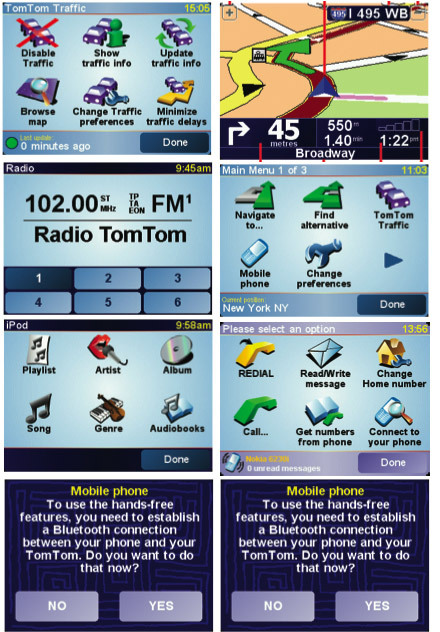 No real information on this one beyond a few pics. We know it’ll be a GPS (duh it’s TomTom), SD, Bluetooth dialing and voice SMS and interface changes. It’ll also have a new docking system that will allow you to cradle your TomTom and use it to control an iPod or USB storage device.